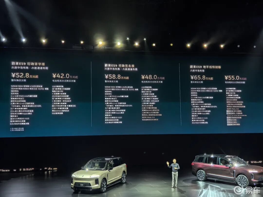 ES9的预售价52.8万元起,最高干到65.8万元。即使换电版,起步价也要42万元。放在今天这个价格战打得血肉横飞、新势力轮番换牌桌的节骨眼上,这个定价简直是逆着风在跑。